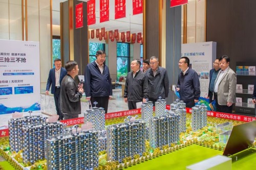 在綠城·桂語(yǔ)朝陽(yáng)項(xiàng)目,王玉志聽取了該項(xiàng)目作為紓困類“好房子”典型案例的專項(xiàng)情況介紹,重點(diǎn)參觀了項(xiàng)目防滲漏、防裂縫及防串味工藝工法樣板間,聽取了項(xiàng)目團(tuán)隊(duì)關(guān)于提升工程品質(zhì)、打造高品質(zhì)“好房子”所采取的具體措施與創(chuàng)新做法。