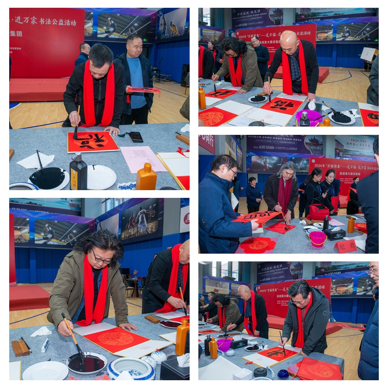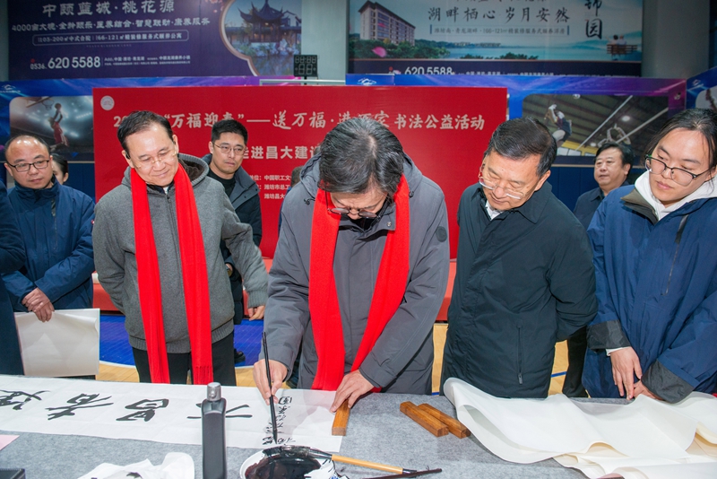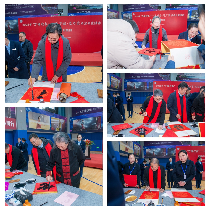 2026年1月23日下午,2026年“萬福迎春”——送萬?!みM萬家書法公益活動在集團中頤龍湖康養(yǎng)小鎮(zhèn)成功舉辦。中華全國總工會原黨組成員、經費審查委員會主任、中國職工文化體育協(xié)會會長李守鎮(zhèn),中國職工文化體育協(xié)會副會長、中國書協(xié)會員葛海鷹,濰坊市人大常委會黨組副書記、副主任、市總工會主席田民利,濰坊市總工會黨組書記、常務副主席賈平,中國書協(xié)理事、中國職工書協(xié)副主席、中國鐵路書協(xié)主席施恩波,中國文聯(lián)機關黨委原常委、中國書法家協(xié)會黨總支原書記、四五六屆理事吳震啟,中國書法家協(xié)會理事、中國美術家協(xié)會理事、中央文史館書畫院院部委員梁永琳,山東省書協(xié)副主席、山東青年政治學院教授亓漢友,山東省書協(xié)副主席、淄博職業(yè)技術大學教授鄒方臣,中國書協(xié)理事、山東省書協(xié)副主席、濰坊市文聯(lián)書畫院院長逄春偉,山東省書協(xié)主席團委員、濟南市書協(xié)副主席胡宗江,山東港口書畫協(xié)會會長、日照市書法家協(xié)會主席丁履磊,一級美術師、山東省書協(xié)顧問、濰坊市書協(xié)主席紀君,中國書協(xié)會員、中國美協(xié)會員、北大訪問學者、山東美協(xié)理事、濰坊美協(xié)副主席季樂勝,集團公司黨委書記、董事長徐鵬強,黨委副書記、總裁朱九洲等領導和書法家出席活動。集團公司副總裁吳杰、孟憲禮參加了活動,活動由集團公司副總裁惠守江主持,各主辦、承辦單位的有關負責人和員工代表、小鎮(zhèn)業(yè)主代表共150余人參加活動。
